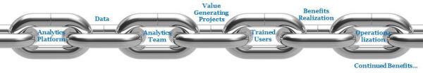 A strong commitment is required from executives to realize the vision behind analytics investments. The broader the goals, the more complex the value-realization equation.